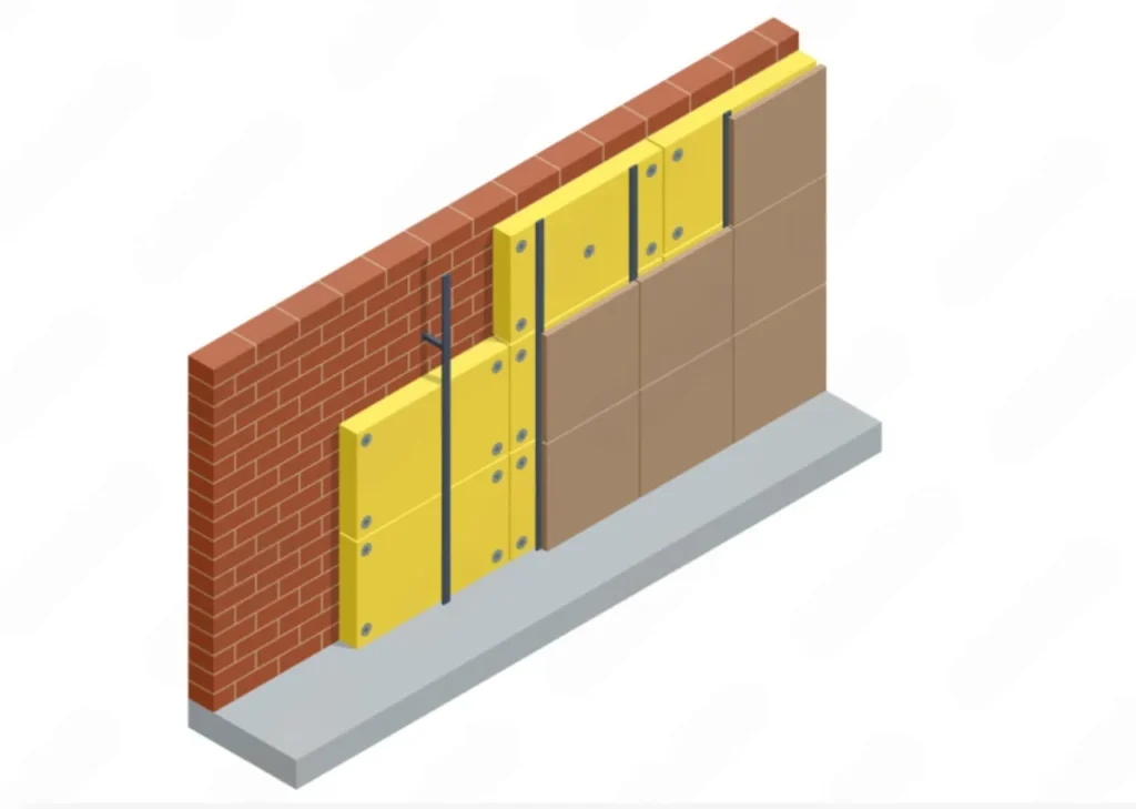 El SATE es un sistema constructivo que consiste en colocar un aislamiento térmico en la parte exterior de la fachada, protegido por capas de mortero y un acabado final decorativo. A diferencia de otros métodos, actúa directamente sobre la envolvente del edificio, mejorando su comportamiento térmico sin reducir espacio interior.